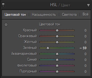 І тут нам в нагоді другий спосіб: корекція зеленого каналу на пост обробці. І власне цей спосіб є помічним у більшості подібних випадків. Річ у тім що для себе давно запримітив що скажімо низка виробників фототехніки програмує свої матриці таким чином що зелений колір відображаються з деяким зміщенням у холодний спектр. Спеціально у травні провів спостереження і зрозумів для прикладу камери Canon саме так і поступають. Око ж на практиці бачить зелену траву дещо у теплішому спектрі. І саме це спостереження підказало спробувати даний метод у боротьбі з надмірним зеленим кольором у кадрі. Для цього можна застосувати два методи: один з них простіший який вимагає змістити баланс білого у тепліший діапазон. Проте він підійде лишень для окремих випадків оскільки задіває весь діапазон кольорів. А ось другий метод є саме те що може стати вашою паличкою-виручалочкою. Йдеться про зміщення зеленого каналу у сторону жовтого спектру з допомогою HSL-повзунків. Такі є у більшості просунутих фотографічних редакторів. Вони можуть по різному виглядати але суть у них одна і та ж. І тут головне не перестаратися