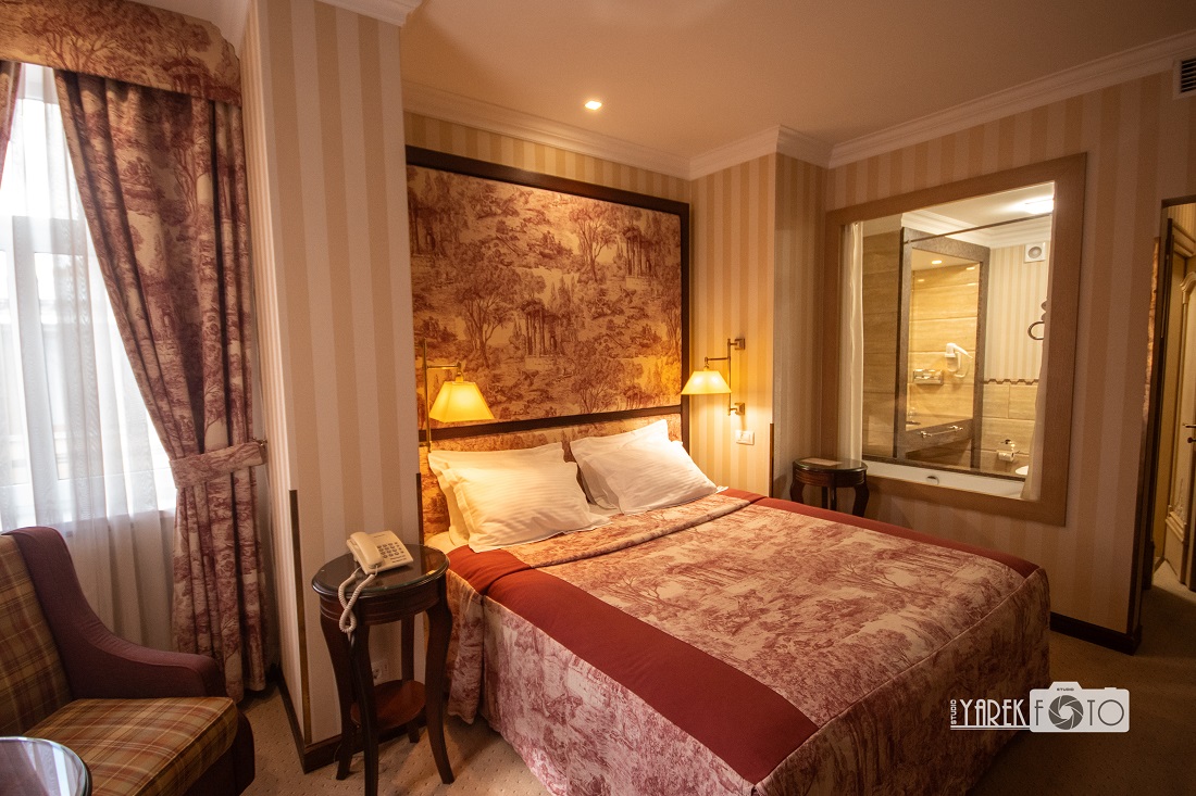 Також варто мати під рукою ширококутний або надширококутний об’єктив, оскільки простір обмежений і для більш деталізованої картинки чи загальних планів така оптика тут на ціну золота. І раз уже мова за простір, якщо бюджет дозволяє, рекомедую обирати для зйомки номери не нижче класу “Півлюкс”, оскільки простору там відчутно більше.