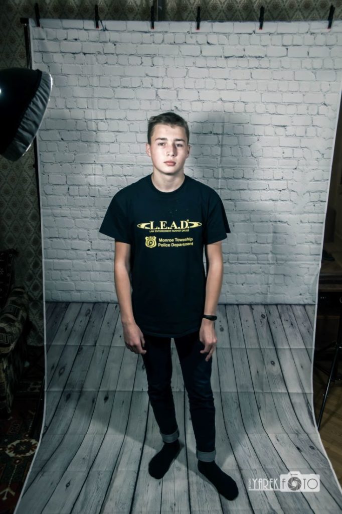 Як, чому саме так? Чи цей фон зорієнтований на китайців, які прийнято вважати є нижчими від європейців? Але ж і їх не втиснути при стандартному розташуванні. Колега фотограф порекомендував ставити моделі трошки далі від фону, мовляв хай підлога виглядає перспективою і тоді уже не буде мати значення на яку висоту та задерта. Проте даний рецепт безрезультатний оскільки півтори метра ширини просто не дадуть вам змоги зробити такий пірует і модель вийде за кордон фонової рамки. Ось робочий кадр нашої моделі Остапа, щоб зрозуміти в чому річ.